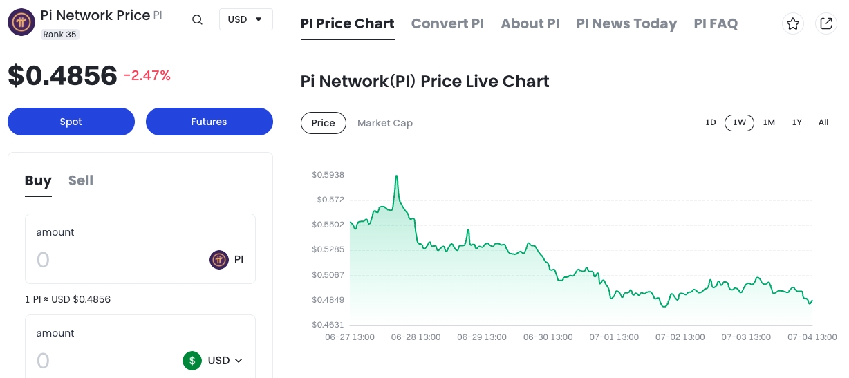 · Pi Network 現在の価格:約0.499ドルで、歴史的な底値0.400ドルより20%高いです;