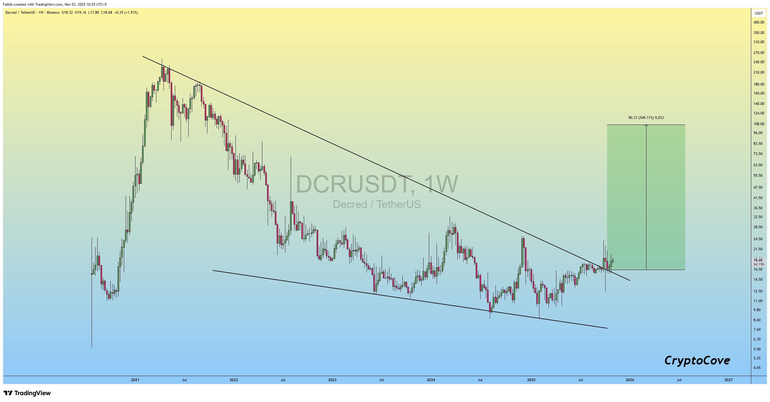 さらに、人気のテクニカルアナリストキャプテン・ファイビックがDCRのラリーに火をつけています。ファイビックのテクニカルチャートによれば、DCRはしばらくの間その価格動向を制限していた三角形パターンを見事に突破しました。
