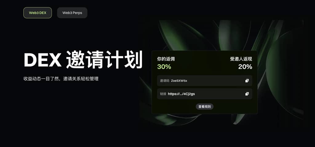 Web3 DEX ゾーンにおいて、リベート範囲は Gate Web3 ユーザーが Swap(Web 版、アプリ版)、Meme Go(Web 版)、および Meme 取引(アプリ版)で行ったすべての取引を含みます。 一般ユーザーは友達の取引手数料の30%のコミッションを享受でき、招待された人は自分のリベート20%を享受できます。コミッションは毎時間ユーザーのアカウントに決済されます。この招待プログラムは、ユーザーにより良いフィードバック体験を提供し、Web3 エコシステムの継続的な発展を促進することを目的としています。