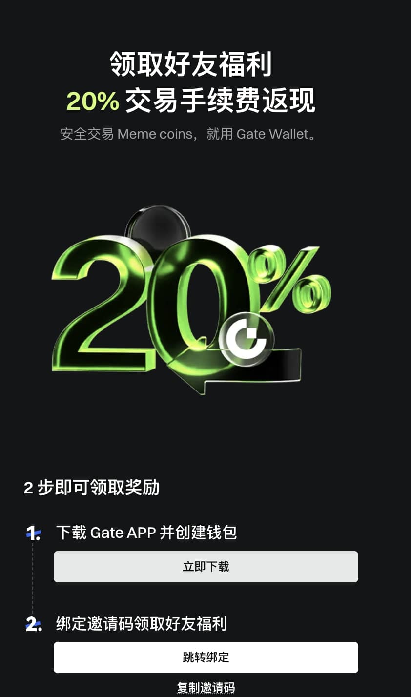 • 注意:Gateで作成された新しいウォレットユーザーのみが7日以内に招待コードをバインドして手数料リベート報酬を獲得可能