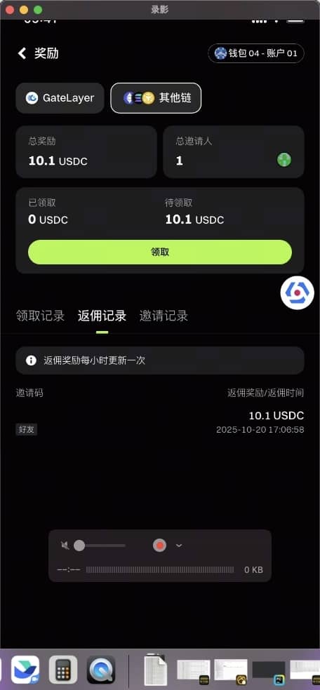 • リベート報酬が10 USDCを超える場合、「クレーム」をクリック可能