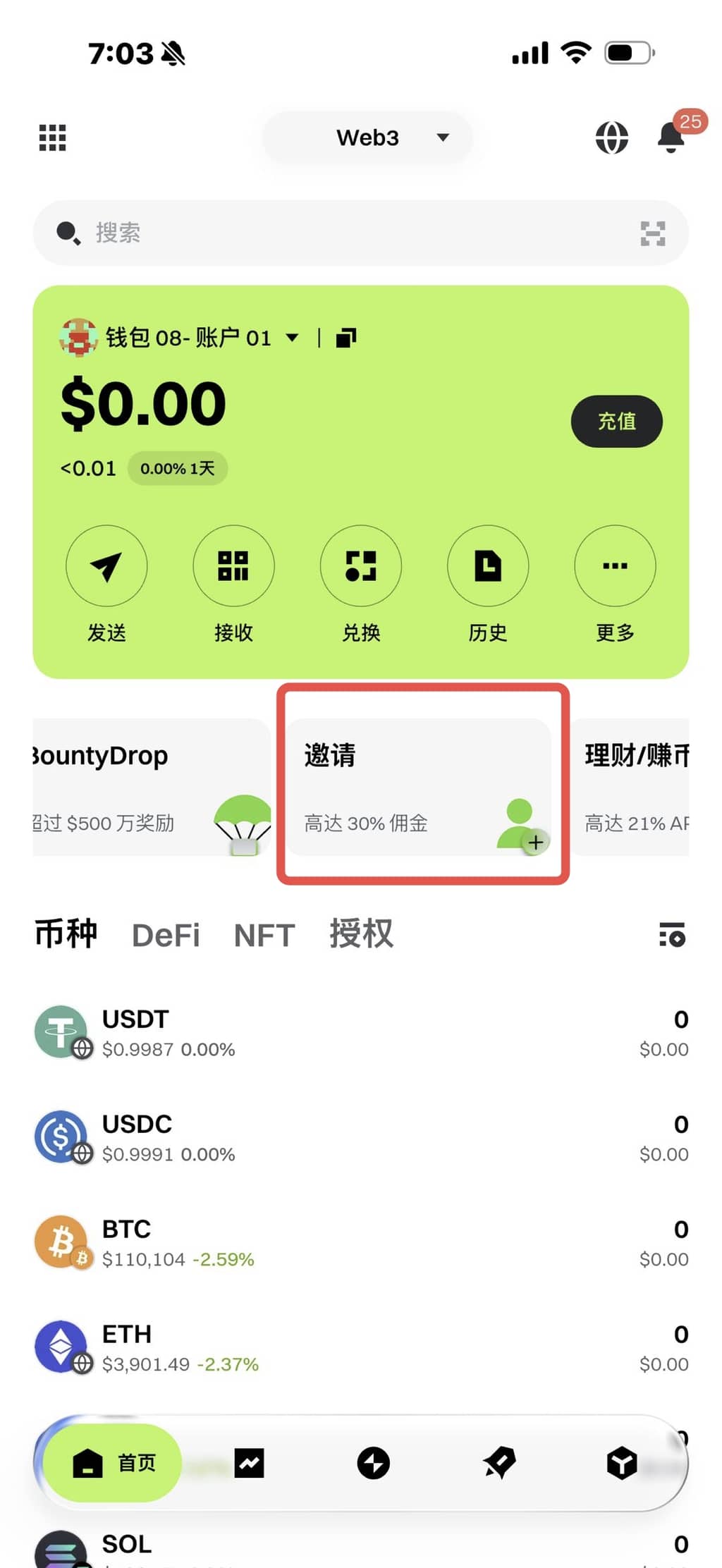 • ウォレットホームの「金剛区」をクリックして「招待」へ