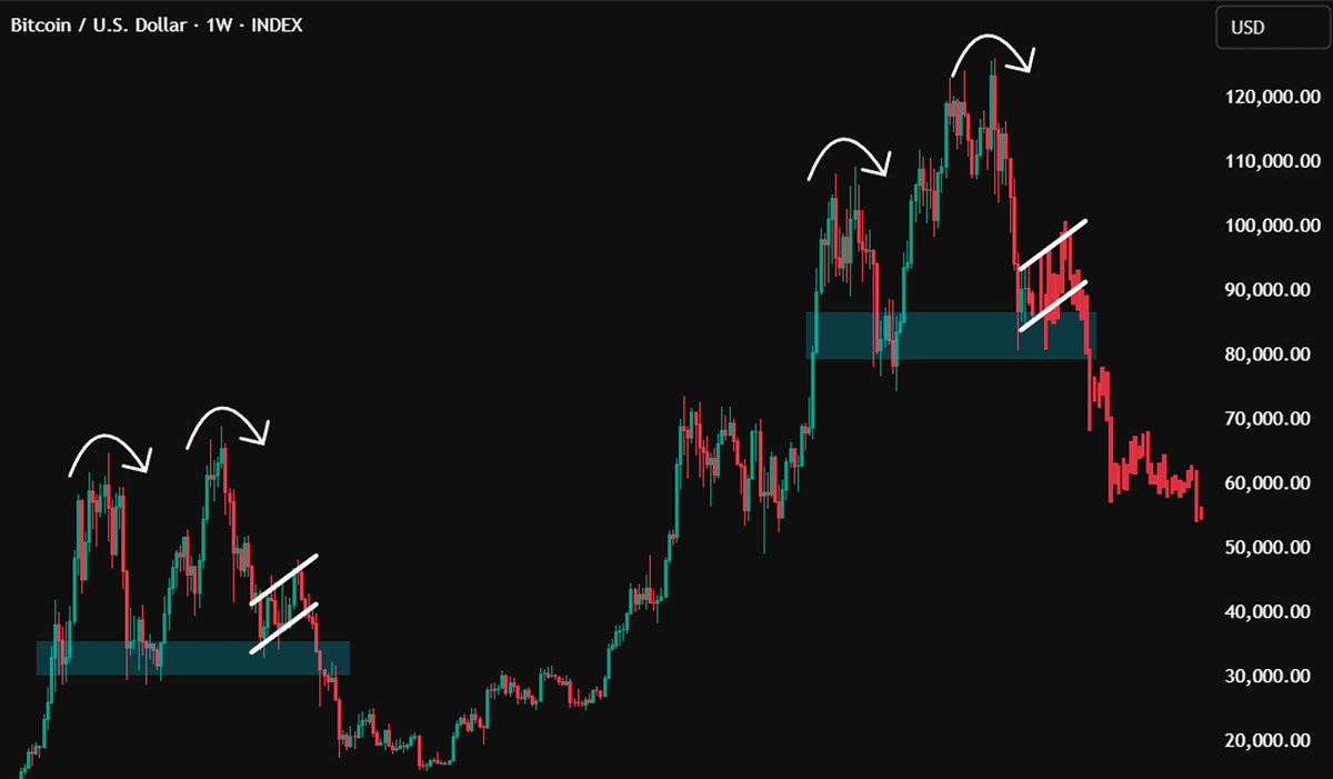 ビットコインの価格が週次タイムフレームで弱気のフラッグパターンを形成しようとしている中、このアナリストは2026年にさらなる売り崩しが起こると予測しています。ただし、ビットコインの価格が$60k 周辺のサポートレベルから反発し、今後数週間で$80k を超えて上昇すれば、アナリストの弱気センチメントは無効となります。