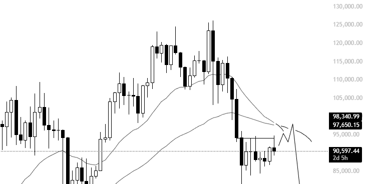 別の投稿で、KillaXBTはビットコインの価格構造についてさらに洞察を共有しています。特に、アナリストは約$93,900で開いたショートポジションを維持し続けていることを明らかにしています。ただし、彼らは今後いずれかの時点で最近の高値を超える動きを期待しており、永久的に弱気ではないことを示しています。しかし、もしビットコインが次の30日以内により低い高値を形成できなかった場合、KillaXBTは価格が$75,000まで自由落下すると予測しており、これは現在の市場価格から約16.67%の下落を示唆しています。