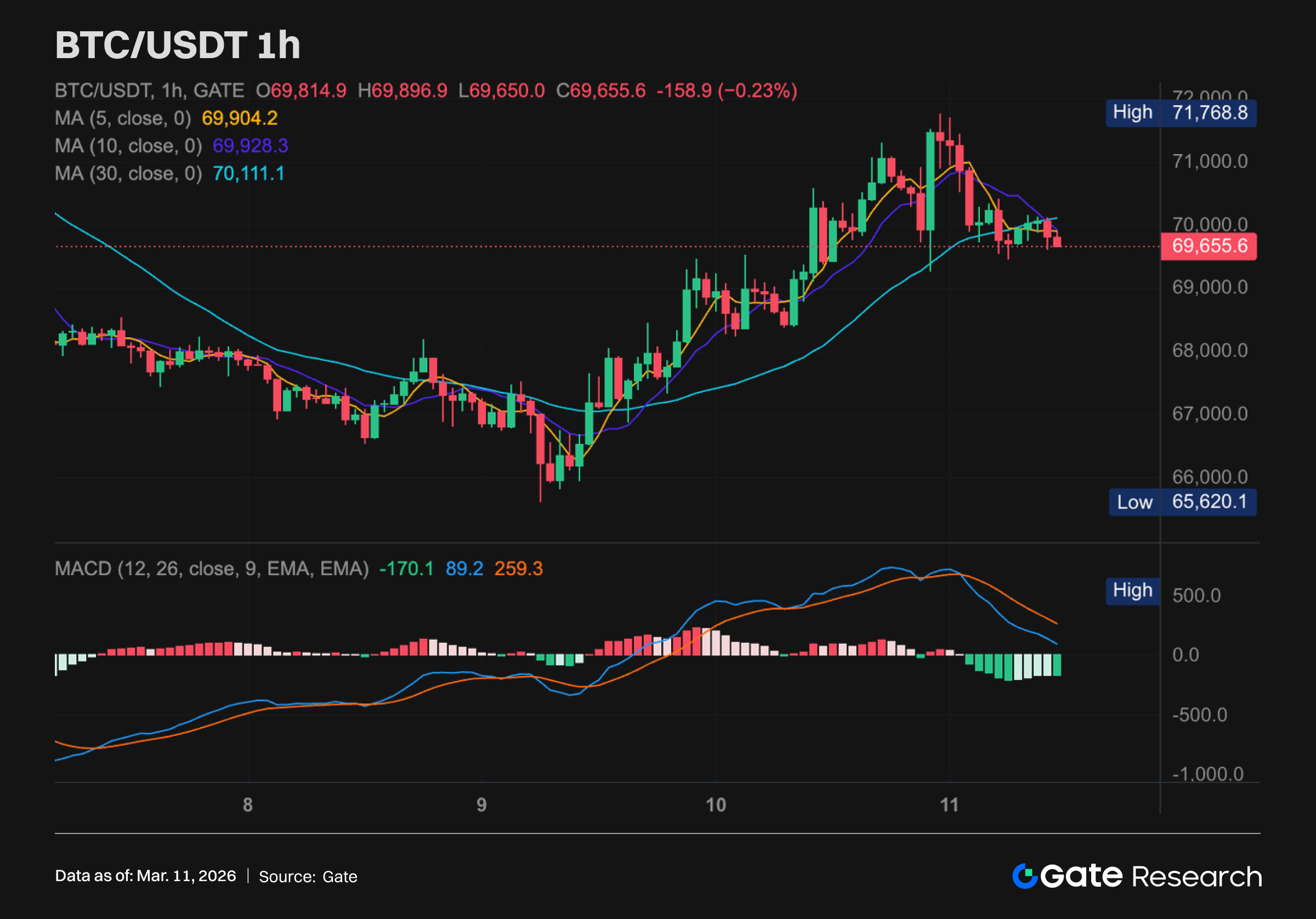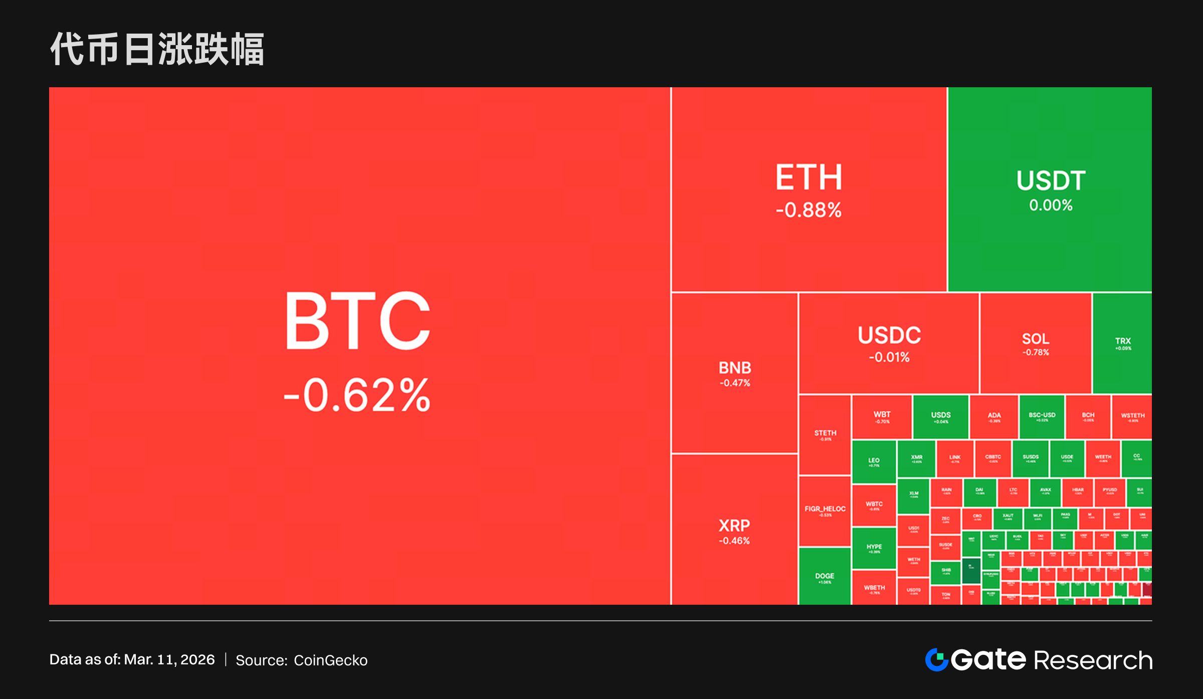 **参考資料:** * Gate, [https://www.gate.com/trade/BTC\_USDT](https://www.gate.com/trade/BTC_USDT) * Farside Investors, [https://farside.co.uk/btc/](https://farside.co.uk/btc/) * Gate, [https://www.gate.com/trade/ETH\_USDT](https://www.gate.com/trade/ETH_USDT) * CoinGecko, [https://www.coingecko.com/en/cryptocurrency-heatmap](https://www.coingecko.com/en/cryptocurrency-heatmap) * Axios, [https://www.axios.com/2026/03/10/oracle-stock-ai-cloud-computing](https://www.axios.com/2026/03/10/oracle-stock-ai-cloud-computing) * X, [https://x.com/HyperliquidX/status/2018327360723202167](https://x.com/HyperliquidX/status/2018327360723202167) * Circle, [https://www.circle.com/blog/circle-nanopayments-launches-on-testnet-as-the-core-primitive-for-agentic-economic-activity](https://www.circle.com/blog/circle-nanopayments-launches-on-testnet-as-the-core-primitive-for-agentic-economic-activity)