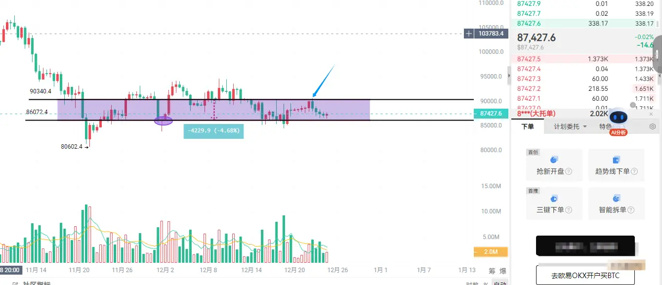 Levels are time-sensitive, and there may be delays in posting, so please refer to real-time quotes. Remember the two key points I mentioned in my previous article for this week: in the short term, focus on testing positions; once outside our target range, it’s the last chance to buy big before the end of the year. I am K-line Life Tommy, your real-time crypto butler #BTC#ETH