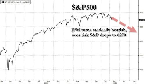 The escalation of US-Iran conflict coupled with soaring oil prices has led JPMorgan’s trading desk to turn fully bearish, lowering their recent target for the S&P 500 index to 6,270 points.