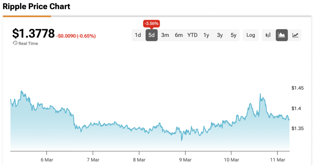 At the time of writing, XRP’s price is sitting at $1.3778.