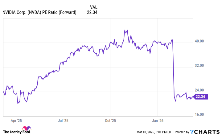 With a forward earnings multiple of about 22, Nvidia shares are at an attractive valuation not seen since the Trump administration’s tariff announcements last April caused the stock market to crash.
