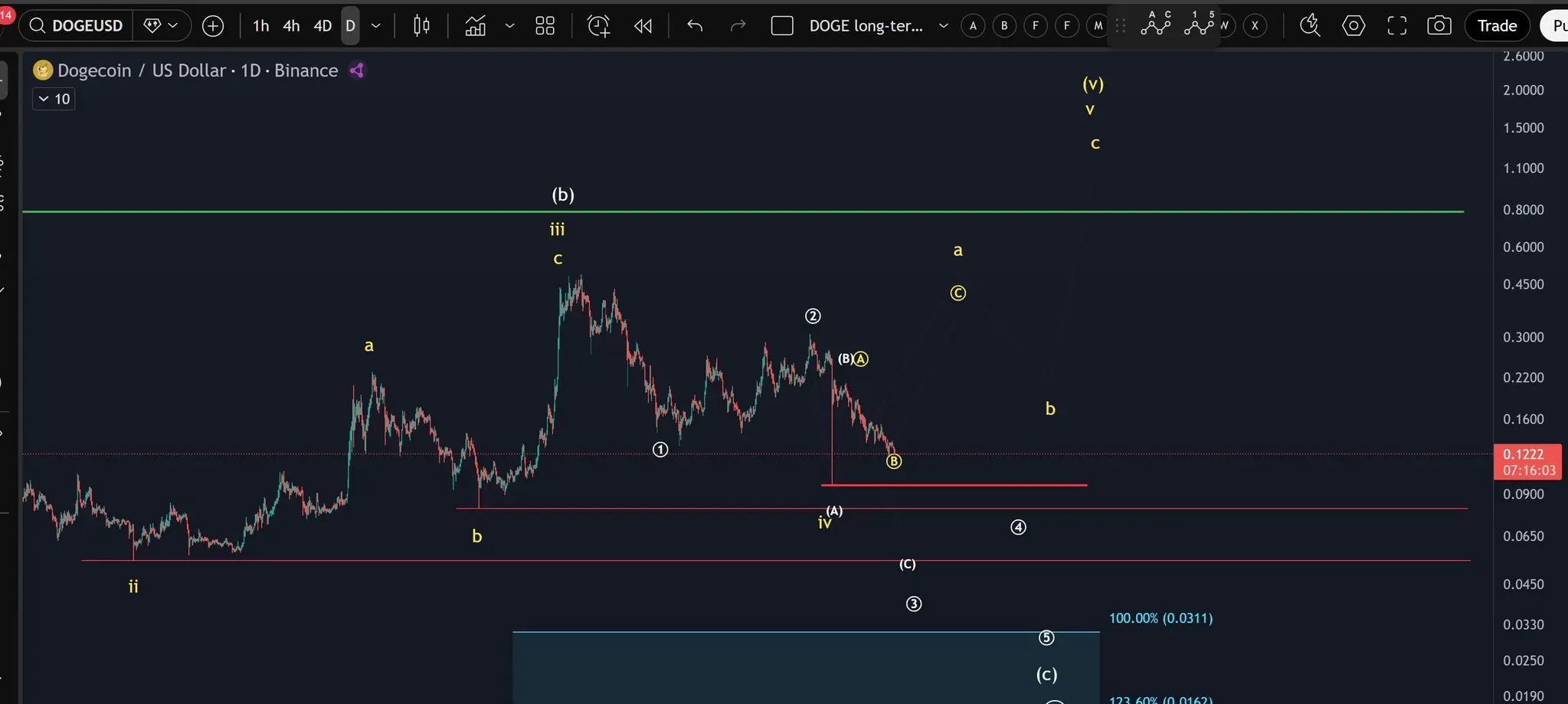 “Não há evidências de que a onda B tenha atingido o fundo”, explicou, o que sugere que uma queda de 20% em direção aos próximos suportes-chave, os níveis de $0.096 e $0.08, pode ser provável. Segundo a publicação, “Recomenda-se cautela até que o preço mostre um primeiro movimento micro de 5 ondas para cima.”
