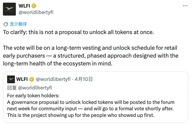 A World Liberty Financial foi fundada em 2024 por uma equipa que inclui vários membros da família Trump, com o objetivo de criar uma plataforma financeira descentralizada. O projeto levantou pelo menos 550 milhões de dólares em duas rondas de venda de tokens. Os materiais de venda inicial do WLFI indicavam claramente que os tokens não eram transferíveis, podiam ser bloqueados indefinidamente, e qualquer desbloqueio requereria votação de governança.