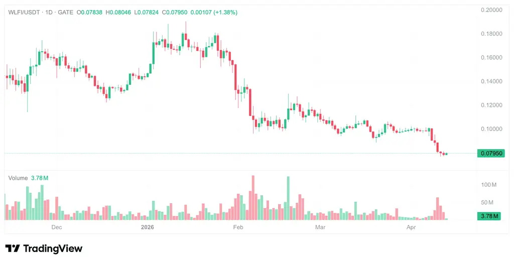 Em início de abril de 2026, o mercado de criptomoedas voltou a focar-se no token WLFI da World Liberty Financial. Este projeto DeFi, profundamente ligado à família Trump, após uma série de controvérsias, viu o seu token nativo WLFI atingir o seu valor mais baixo de sempre. Por trás da queda de preço, está um evento complexo envolvendo auto-hipoteca, empréstimos de partes relacionadas e um esvaziamento de liquidez, expondo riscos profundos na estrutura de governança do DeFi ao público. Até 13 de abril de 2026, os dados do mercado Gate indicam que o preço do WLFI está aproximadamente a 0,07866 dólares, com um volume de negociação de 1,5 milhões de dólares nas últimas 24 horas, uma capitalização de mercado de cerca de 1,93 mil milhões de dólares, uma oferta em circulação de 24,66 mil milhões de tokens, e uma oferta total de 100 mil milhões de tokens.