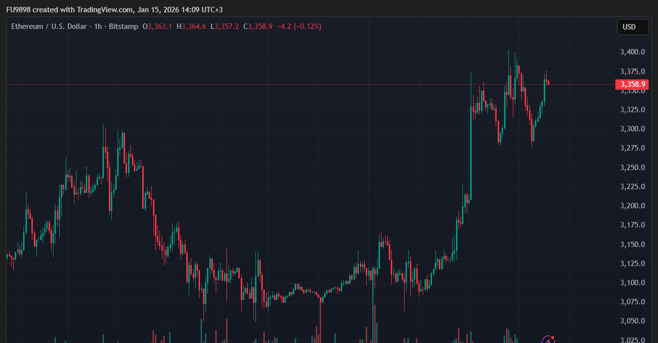 Ethereum в настоящее время торгуется по цене $3,359, также увеличившись примерно на 8% за последние три дня.