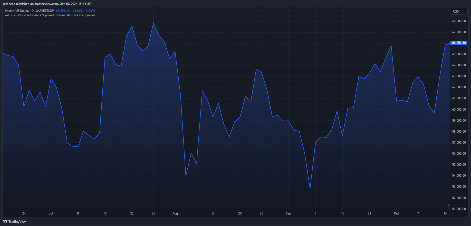 Bitcoin is now trading at $66,053. Chart: TradingView