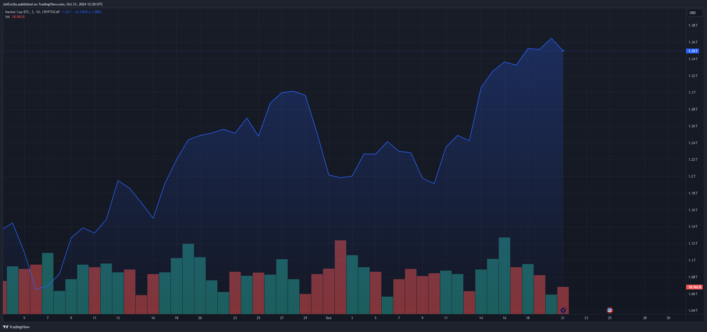 BTC market cap currently at $1.35 trillion. Chart: TradingView.com## Metrics Suggest An Increasing Number Of BTC Holders