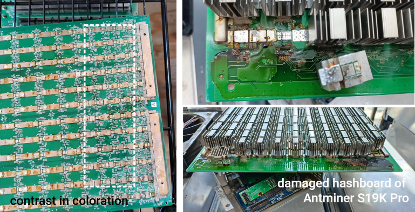 At the heart of this issue lies severe corrosion within the hashboards of the Antminer S19 series, particularly the S19K Pro model. The stark contrast in coloration between the air inlet side and the rest of the hashboard is a tangible manifestation of this corrosion, which has been exacerbated by the harsh Texas weather.
