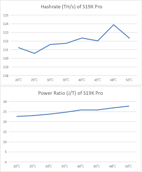 As evidenced by the Bitmain Antminer S19K Pro’s fluctuating hashrate and increased power ratio with rising ambient temperatures, its small heat capacity exacerbates the impact of rapid temperature changes. This can lead to damage even in the absence of extreme conditions.