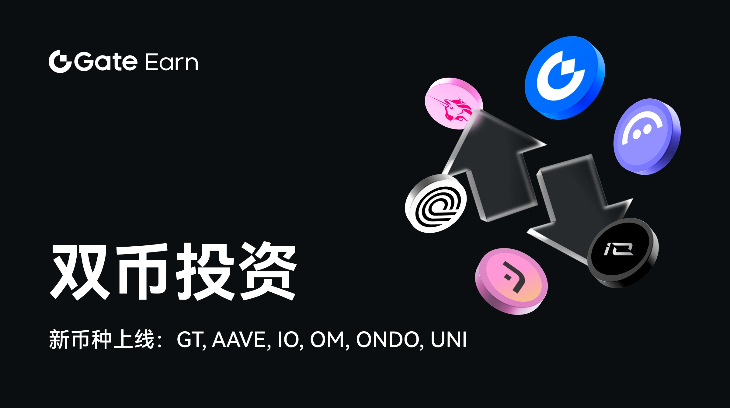 Gate.io подвійні інвестиції тепер підтримують нові монети GT, AAVE, IO, OM, ONDO, UNI, прогнозуйте тенденції ринку, обирайте низькі покупки та високі продажі для досягнення додаткового доходу.