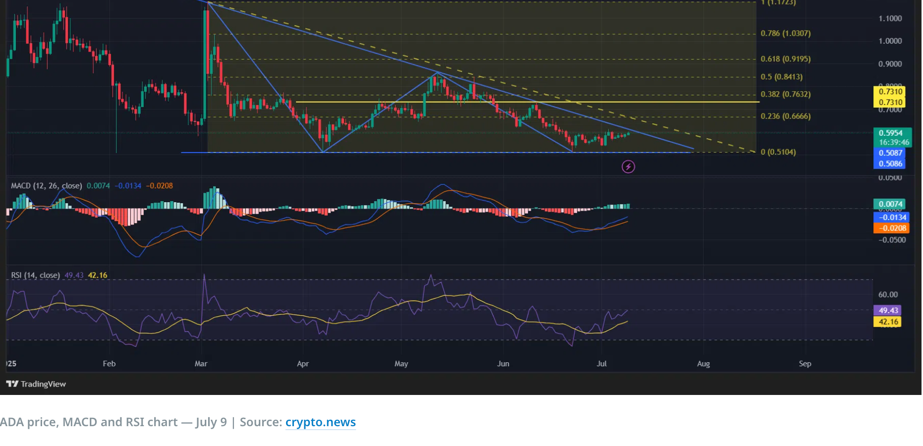 Деякі аналітики ринку вважають липень потенційним переломним моментом для ADA. З наближенням третього кварталу, більш широкий ринок криптовалют повільно повертає оптимізм, увага ринку зосередилася на 0.70 доларах, сприймаючи його як наступний ключовий рівень опору. Якщо вдасться успішно подолати цю зону, особливо в умовах покращення макроекономічних умов і ліквідності, ADA має шанс знову почати шлях до мети 1 долар.