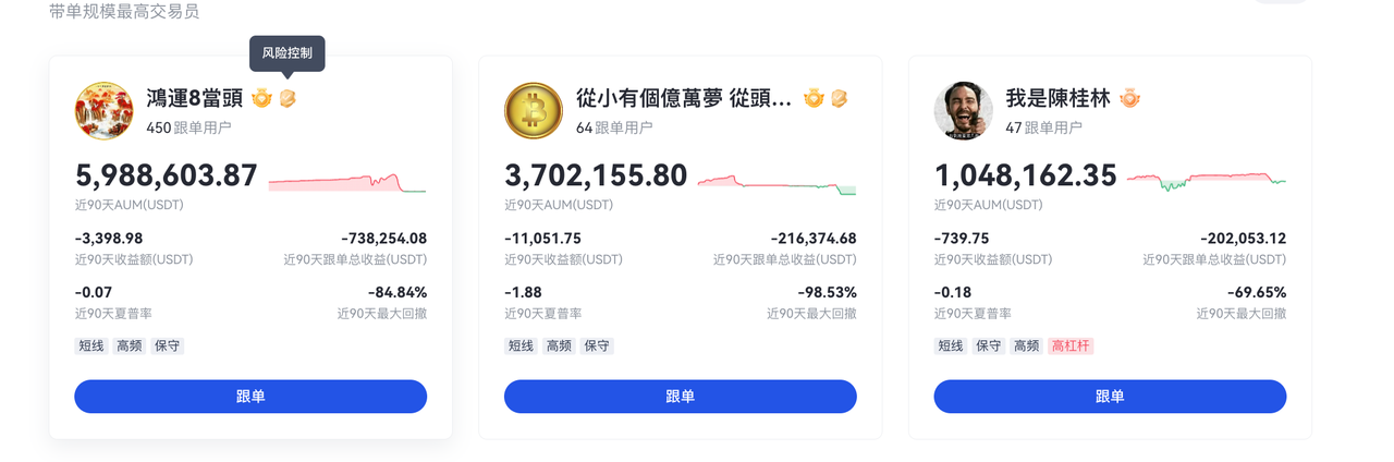2.專屬標籤加持:加入劣後機制的帶單員會獲得“跟單包賠”標籤,標籤會直接展示在帶單員ID旁,簡潔醒目,辨識度高。